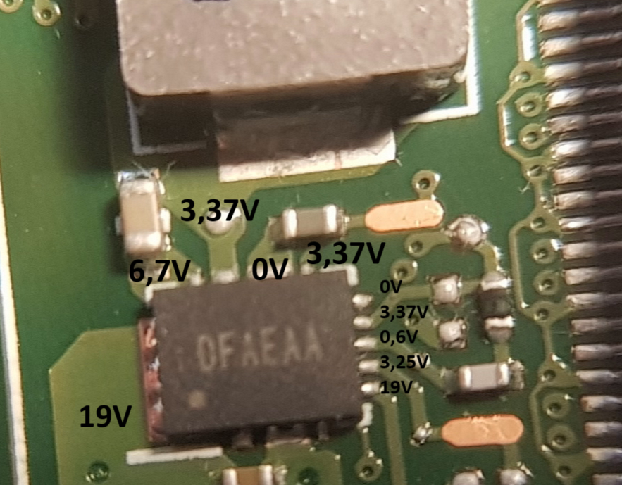 - na 2 cewkach oznaczonych jako COIL2&3 pojawia się na chwilę 0.8V. (foto), rezystancja 14,5Ω