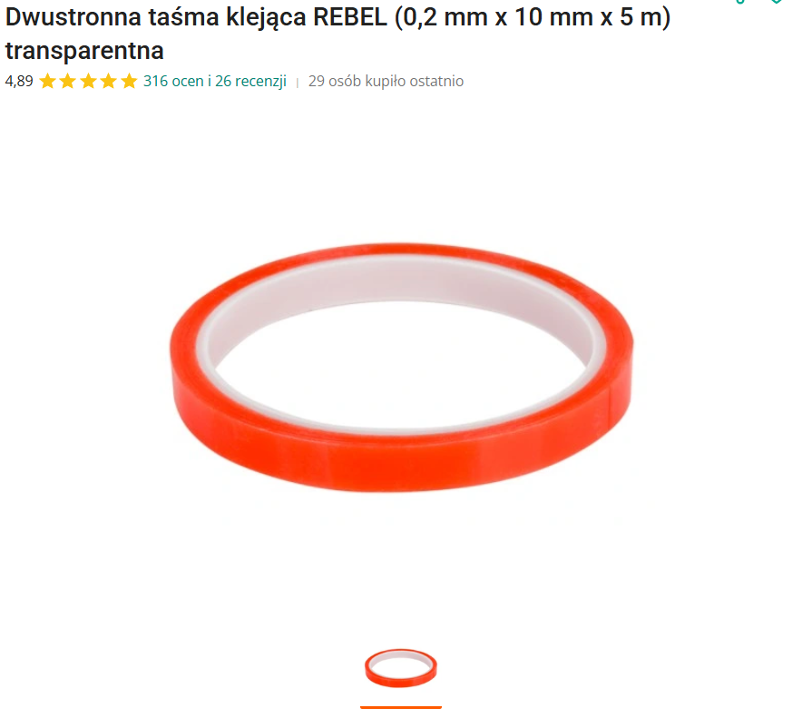 Użyłem cienkiej dwustronnej taśmy, dokładnie takiej: