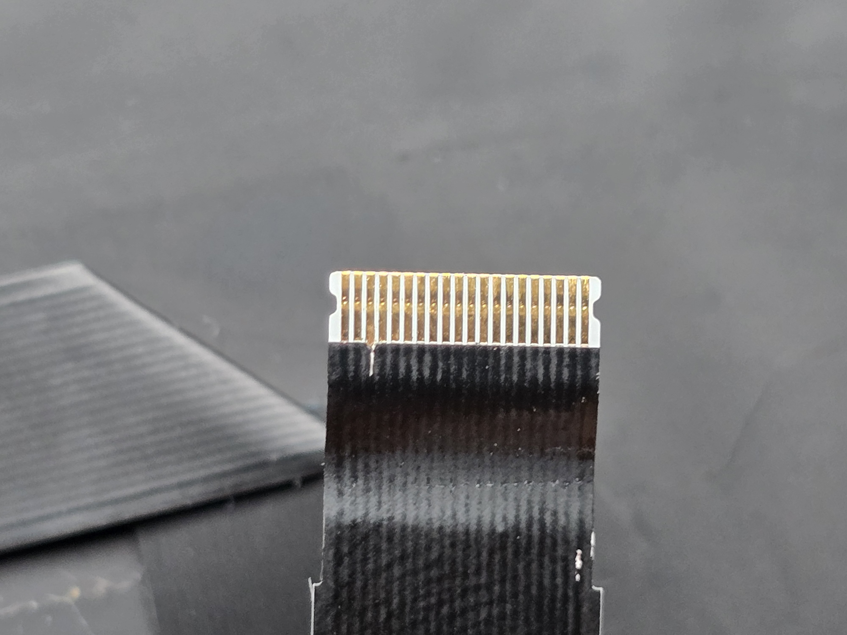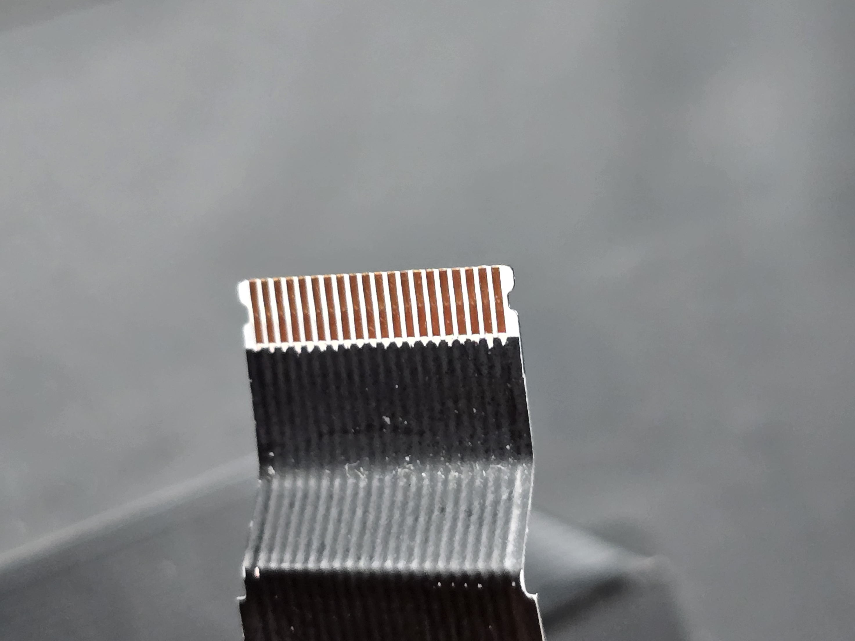 Zdjęcia płyty głównej są zbyt słabej jakości, aby je analizować. Sugerowałbym wykonanie zdjęć o większej rozdzielczości oraz kawałkami (np. 1/4, co daje 4 zdjęcia na stronę, czyli łącznie 8 zdjęć - my musimy widzieć płytę tak, jakbyś Ty ją widział pod mikroskopem). Na razie jednak wstrzymaj się ze zdjęciami całej płyty, a zamiast tego wykonaj zdjęcia płytki I/O (z obu stron, duża rozdzielczość, dobre doświetlenie), sztywnej taśmy tej płytki od strony złącz oraz gniazda I/O na płycie głównej (doświetlone, z obu boków aby było wyraźnie widać piny gniazda).
