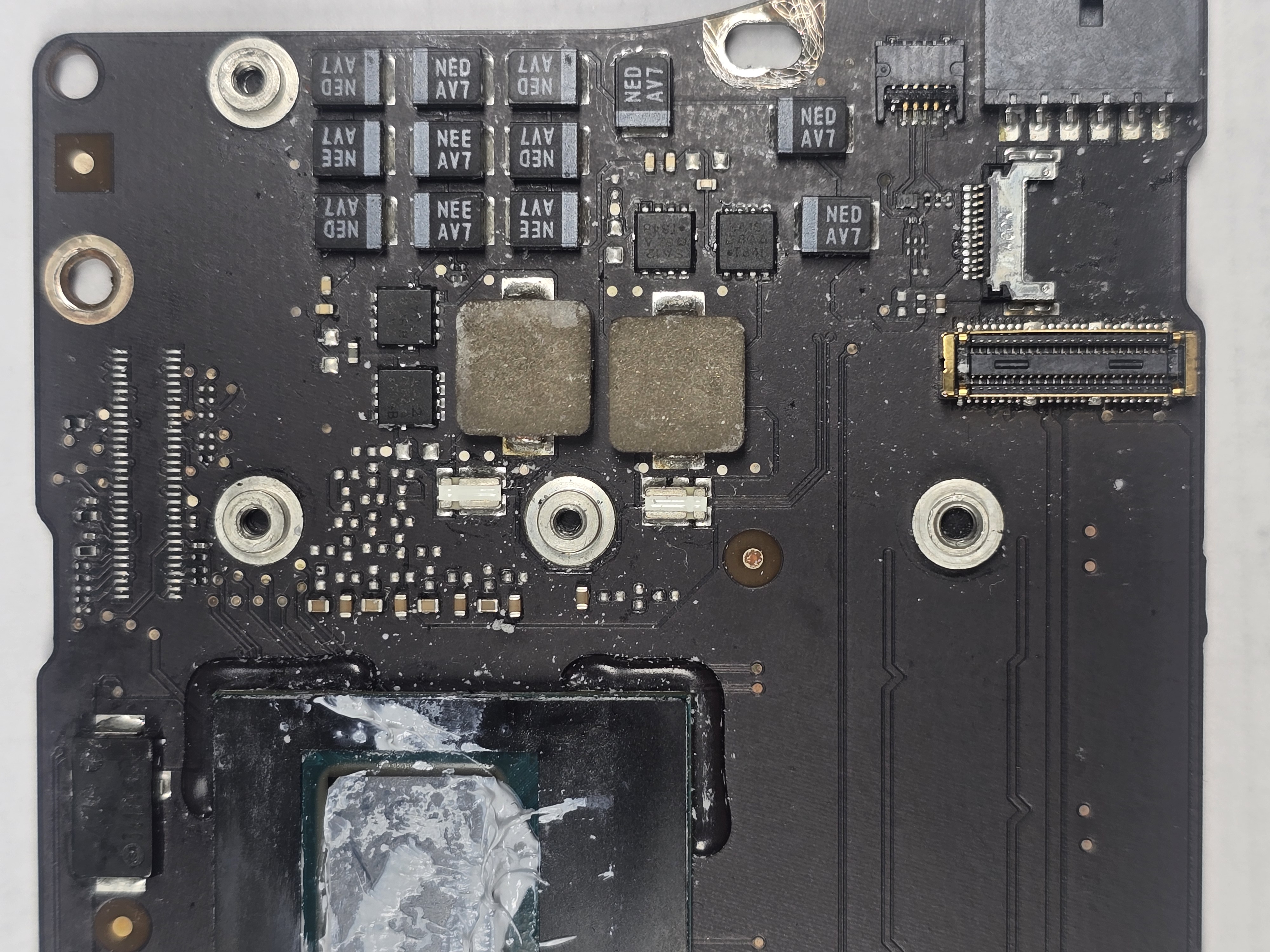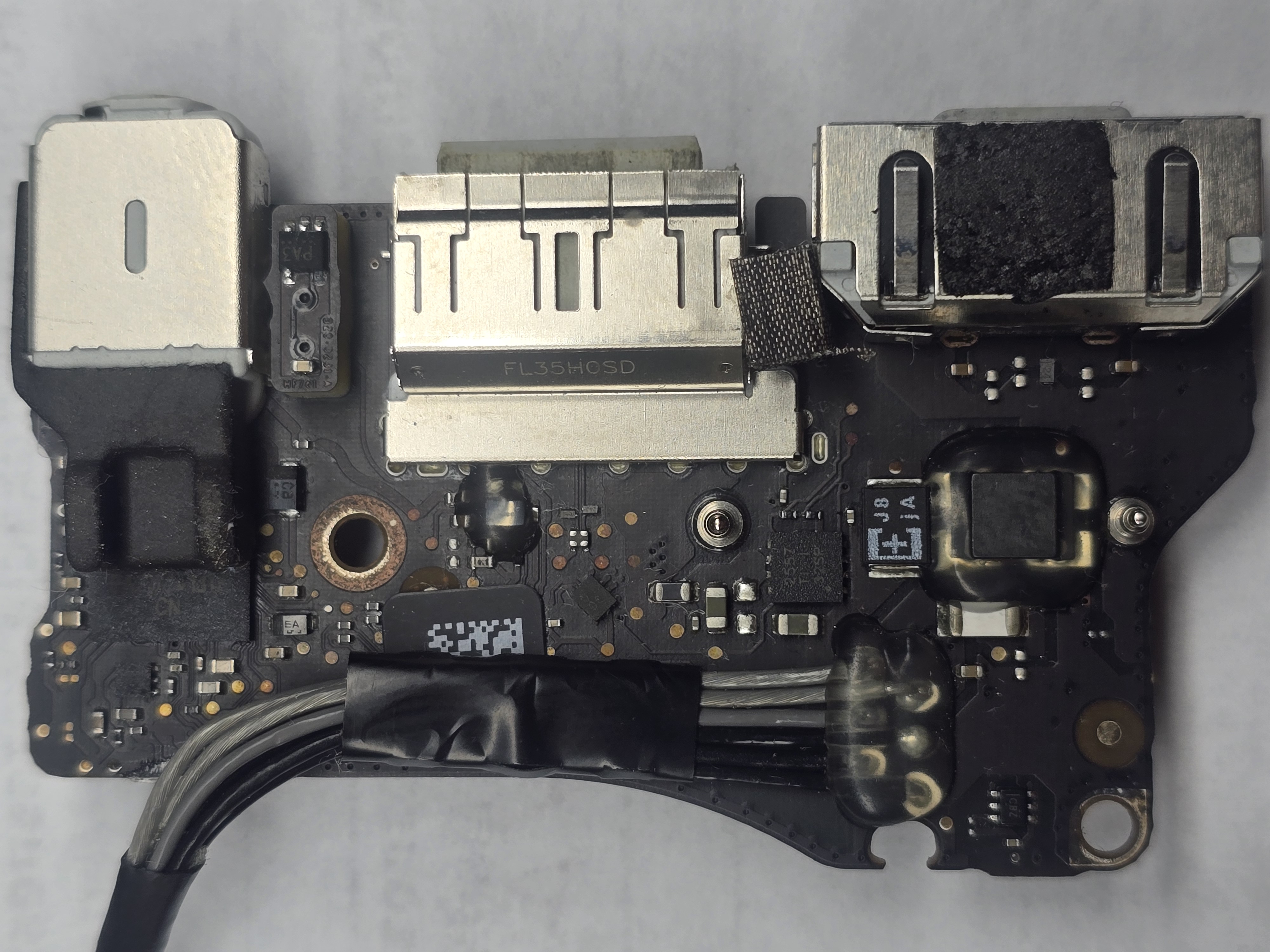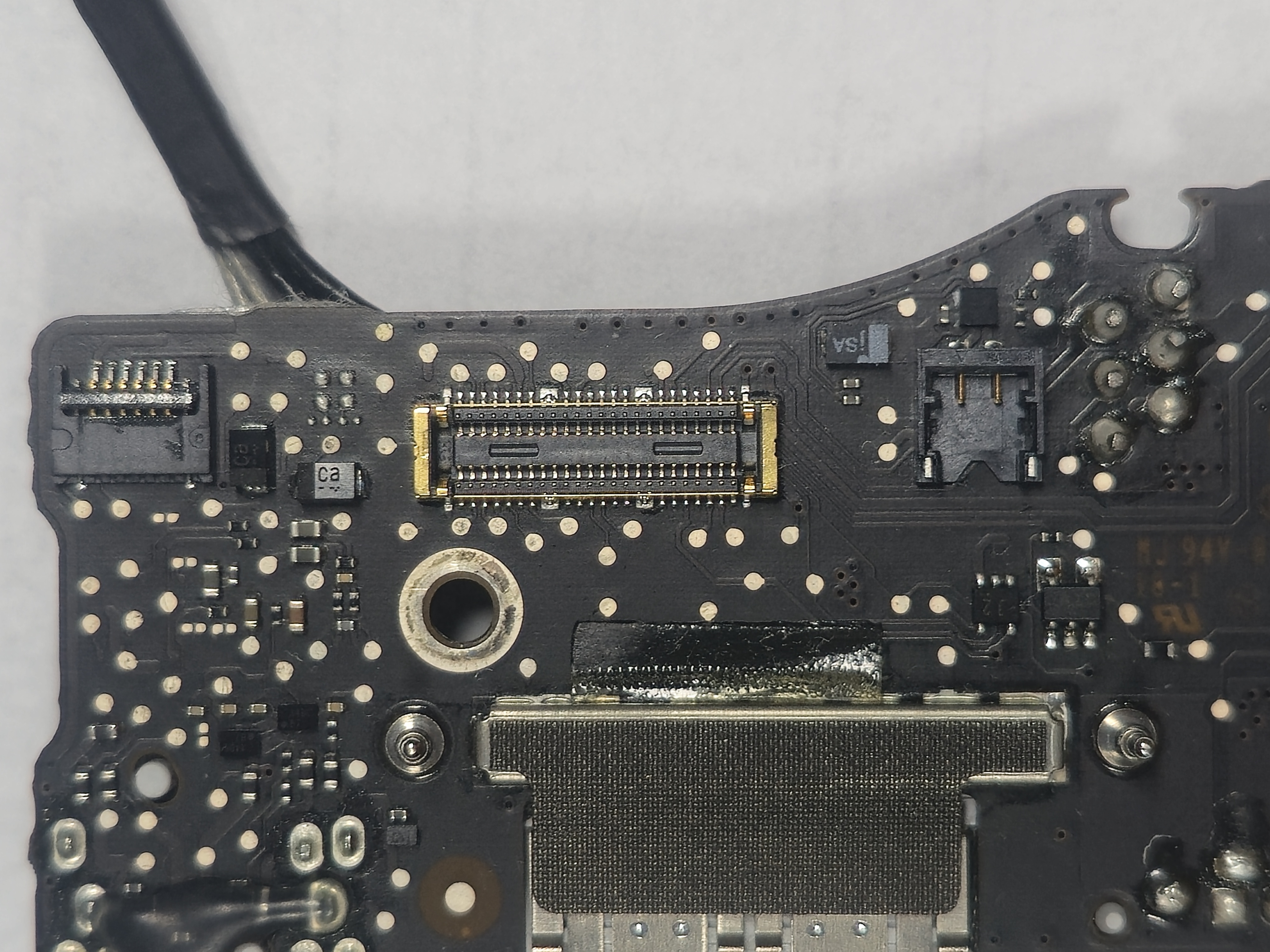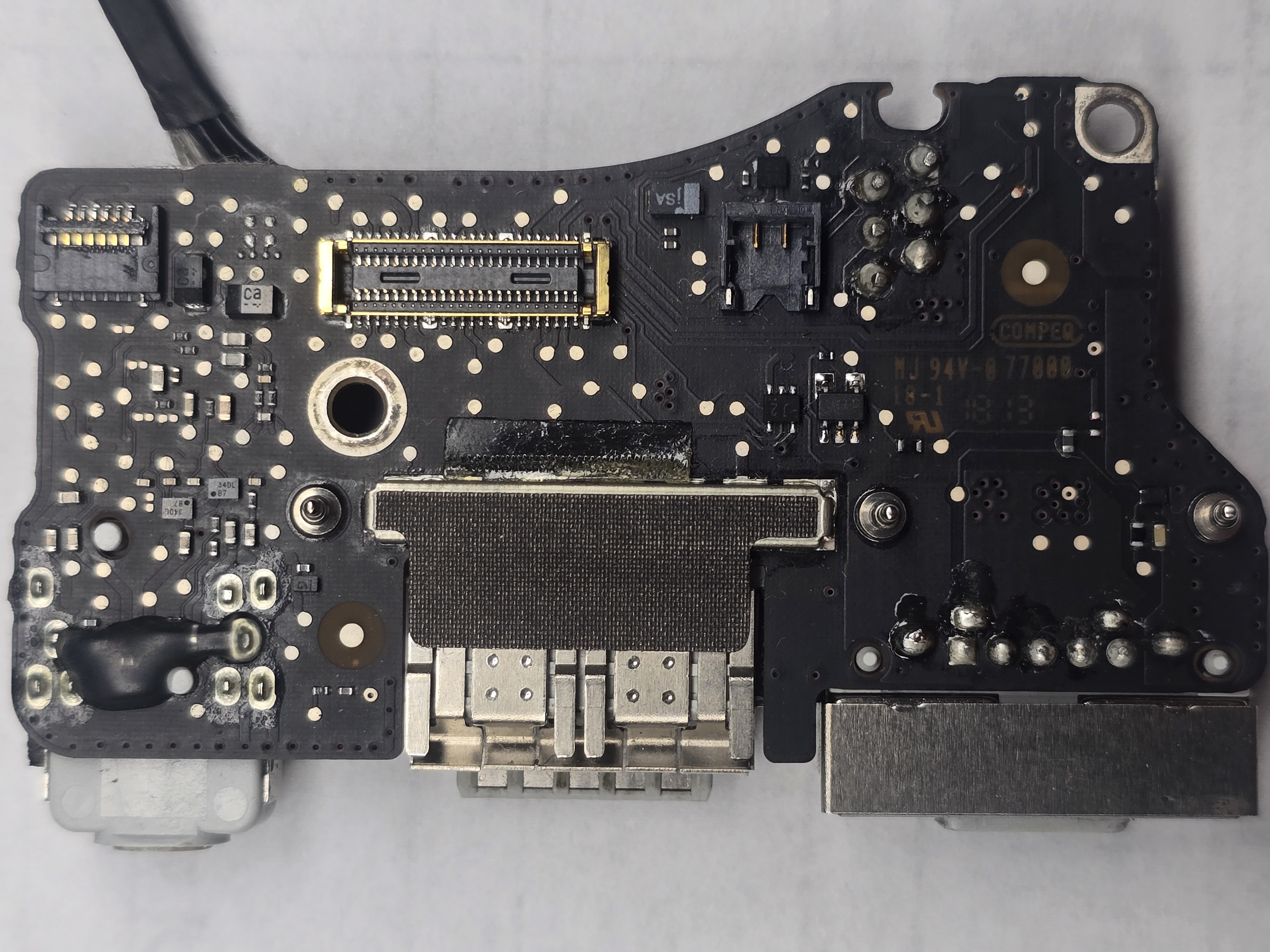 Oczyść złącze I/O na płycie głównej izopropanolem i sprawdź pęsetą, czy wszystkie piny trzymają się padów (czy nie ma zimnego lutu). Jeśli wszystko jest tutaj w porządku to podstaw 100% sprawdzoną płytkę I/O. W tym modelu możesz podstawić dowolną płytkę I/O z roczników 2013-2017. Jeśli i to nic nie da, to SMC jest do wymiany.