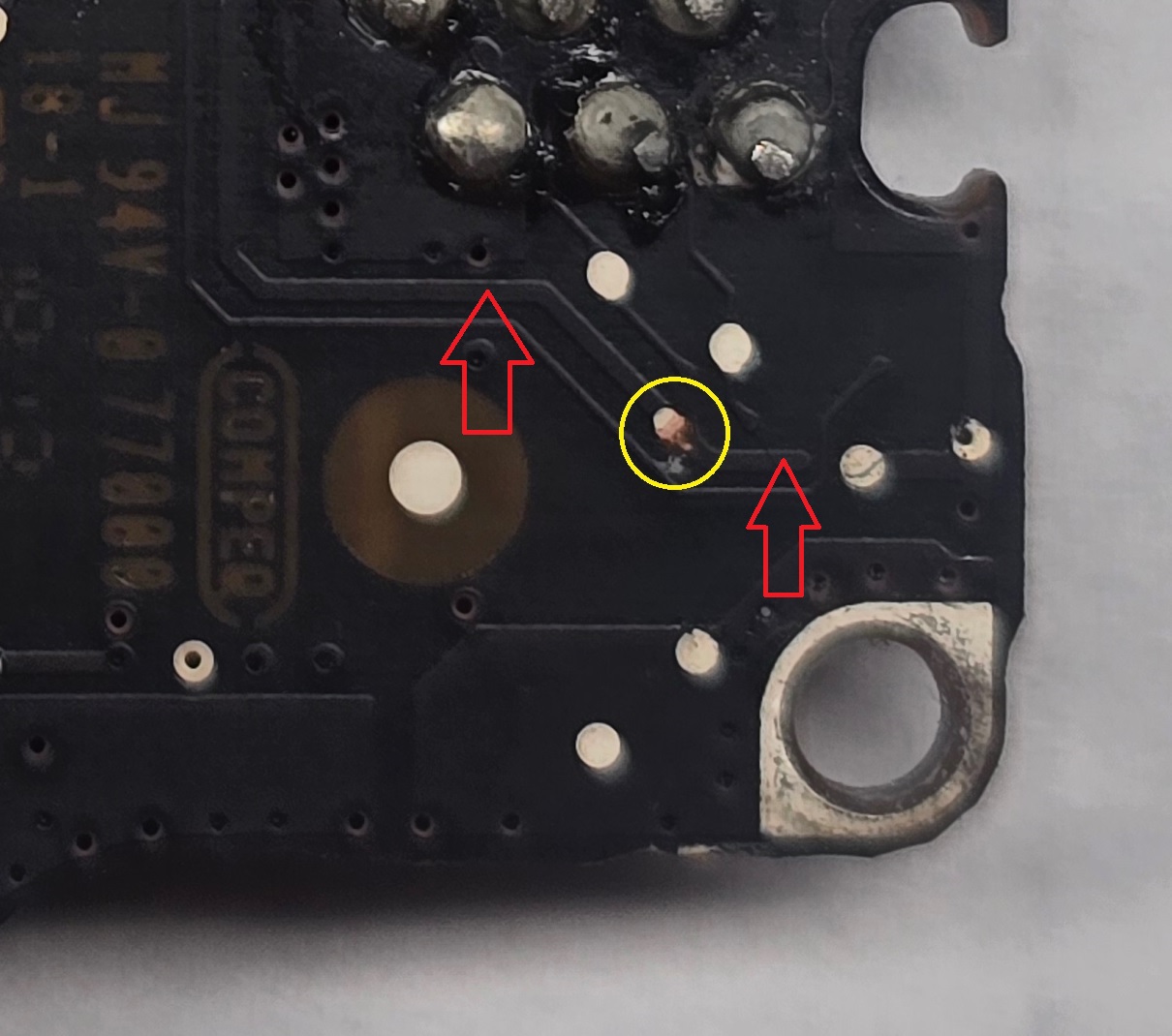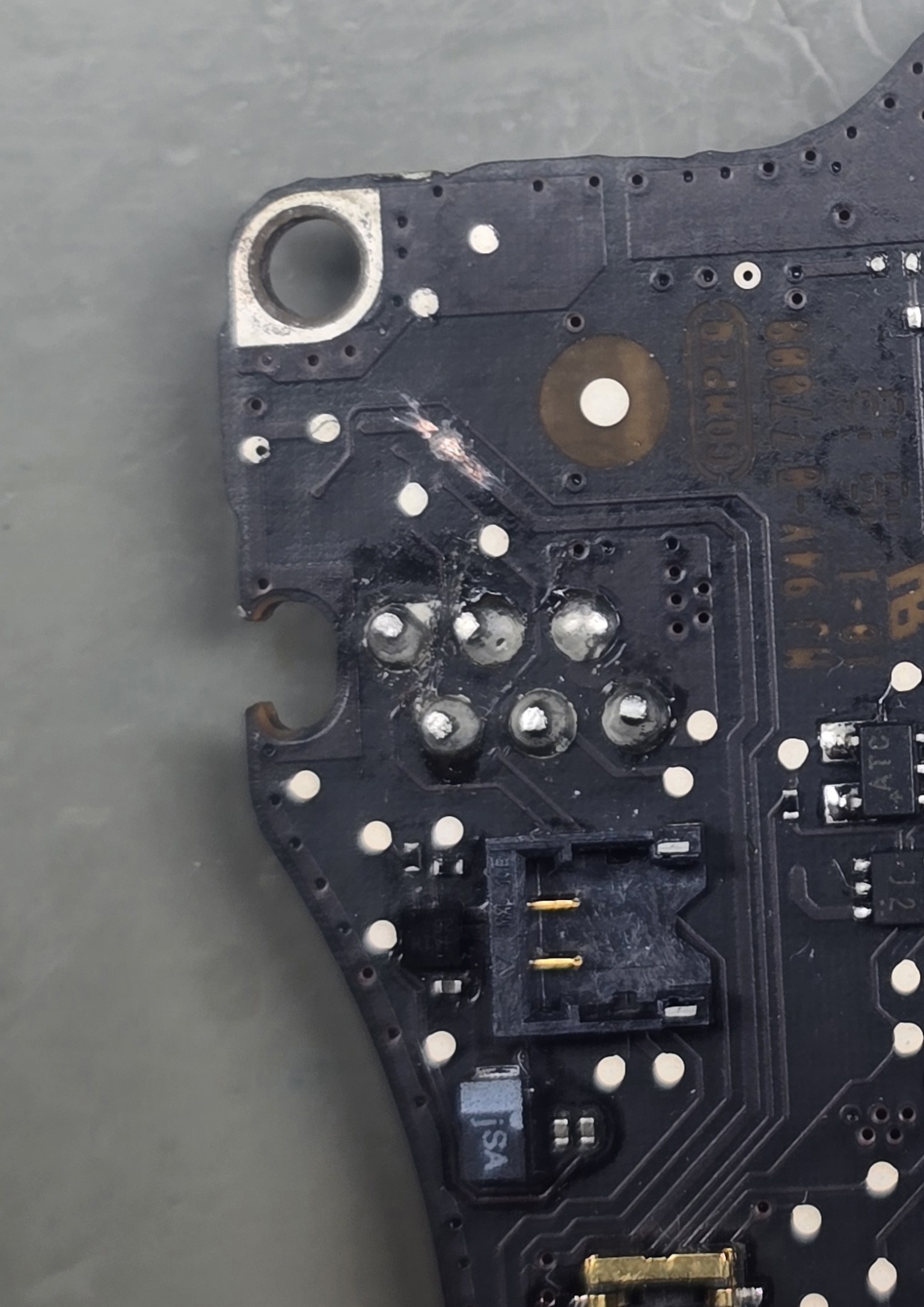 Szok jaki masz dobry wzrok, ja po mikroskopem tego nie widziałem. Może dlatego, że zalanie nie było na tej płytce I/O i się nie niej nie skupiłem.