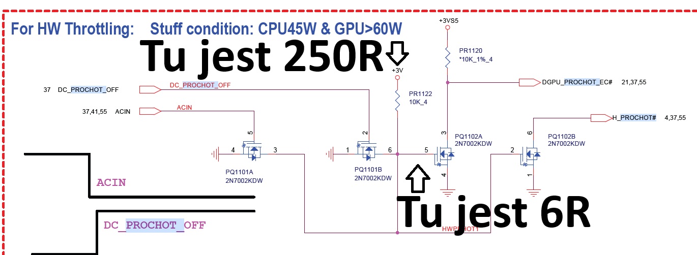 Witam, mam na warsztacie w.w laptop po upadku. Laptop uruchamia się, ładuje system, ładuje baterię, gpu, ram i ssd działa. Jest jedna zaskakująca rzecz, po podłączeniu zasilacza cpu schodzi do 0.4GHz a hwinfo mówi, że płyta wystawiła PROCHOT EXT. Laptop sprawdzony na 2 oryginalnych zasilaczach, z baterią i bez, na windows 10 i 11 bez różnicy. Żaden soft typu ryzenadj, zenstates czy ryzen control nie są w stanie zablokować tego sygnału. Płyta główna wygląda idealnie nie widać nigdzie uszkodzonych elementów i braków w elementach. Proszę o jakiś punkt zaczepienia. Pozdrawiam