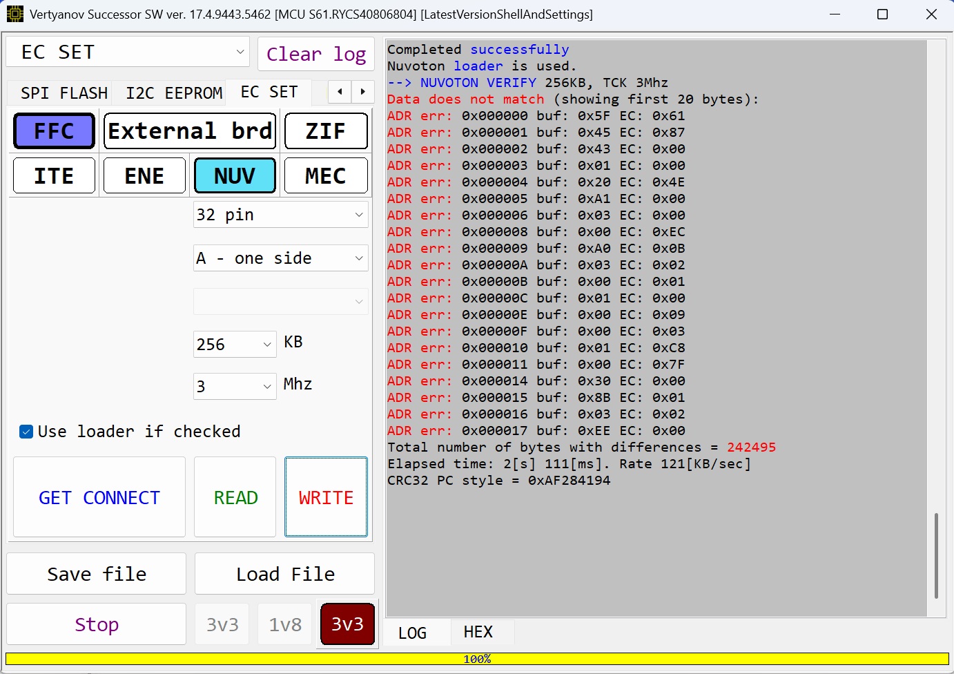 Zgrałem wsad z KBC i wyciągnąłem go też z BIOS, jest dużo różnic. Problem pojawia się tylko wtedy gdy go chcę programować, niby wszytko idzie OK ale są błędy. Nie kasuje go ani nie wgrywa nowego wsadu.