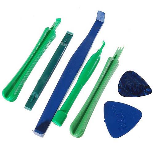 Najbardziej z tego się przydaje ta niebieska "łyżka/łapka" do otwierania różnej maści obudów i zatrzasków. Jest sztywniejsza od tych kostek gitarowych, lecz wystarczająco miękka by nie pokancerować obudowy.