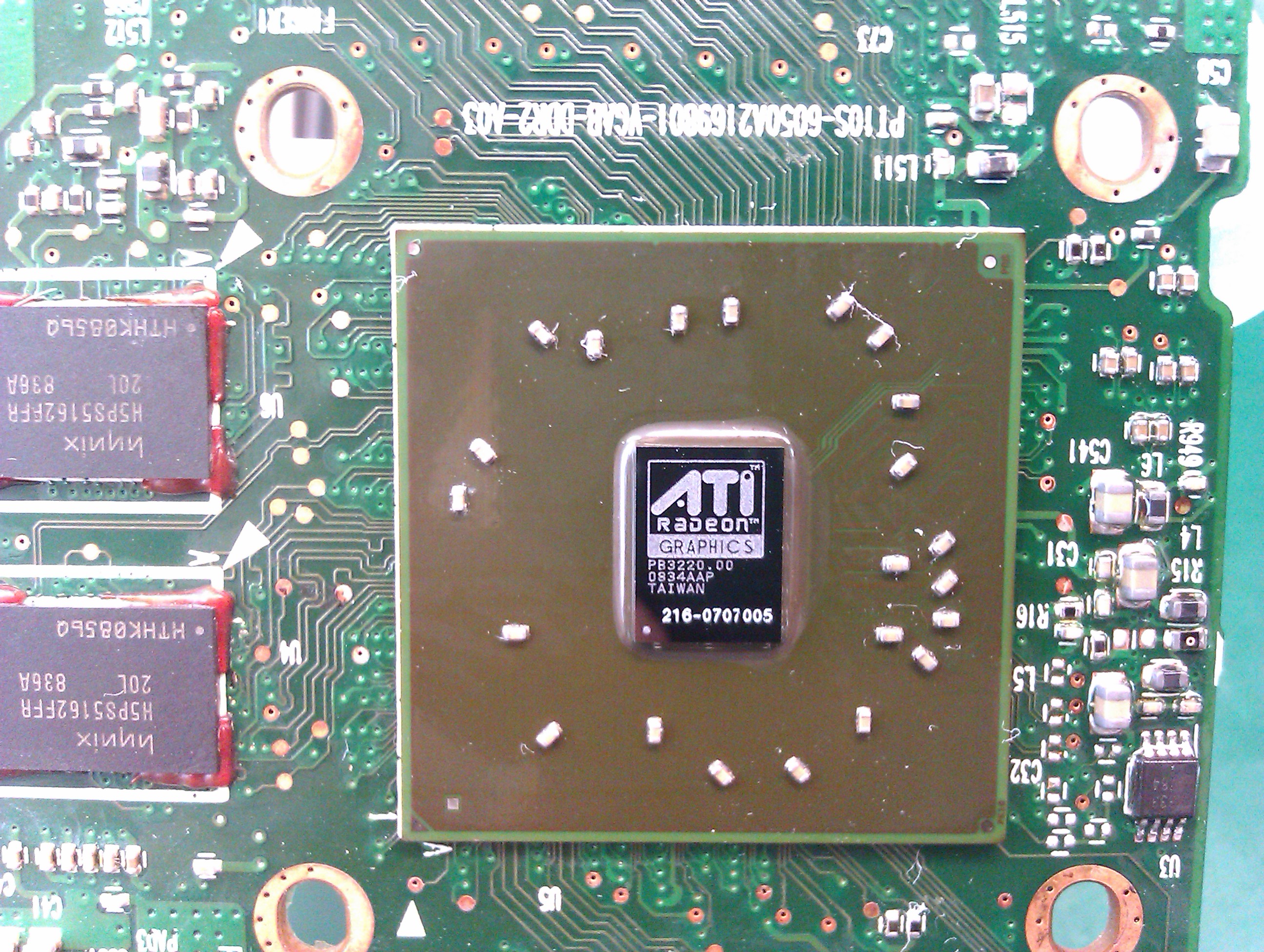 Trafił mi się układ do wymiany w karcie graficznej laptopa TOSHIBA A300-1MT i tutaj pojawił się mały problem, a dokładniej wątpliwości dotyczące układu, który ma być przylutowany.