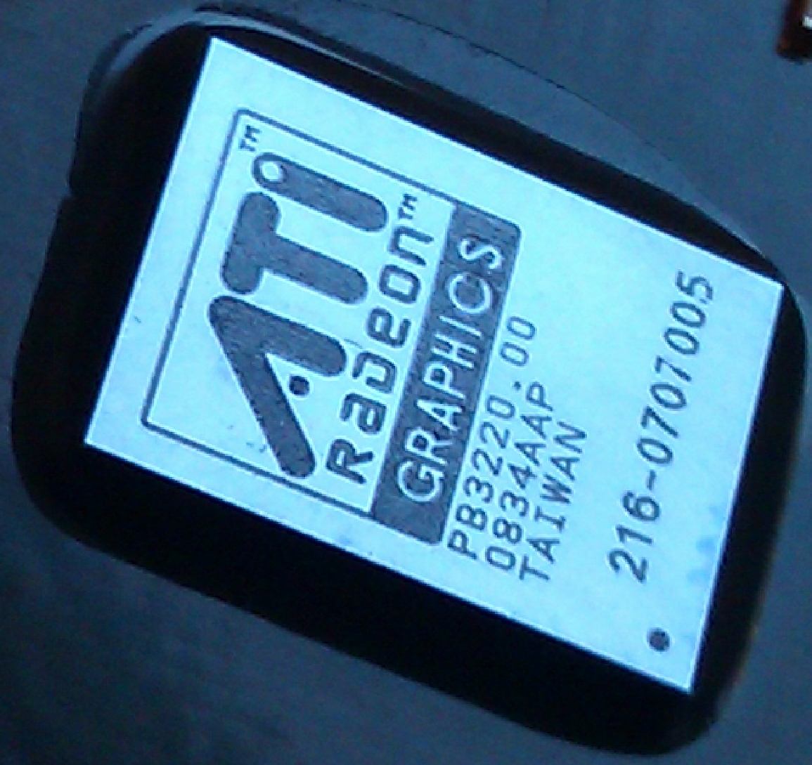 Moje podejrzenia wzbudził sposób oznaczenia a dokładniej sposób wypalenia laserem "ATI RADEON GRAPHICS" oraz to że w nowym układzie rdzeń jest ma zaokrąglone krawędzie jakby był polerowany. W oryginale napis jest bardzo wyraźny i nie widać pojedynczych linii napisu a w nowym przypomina to wręcz grawer.
