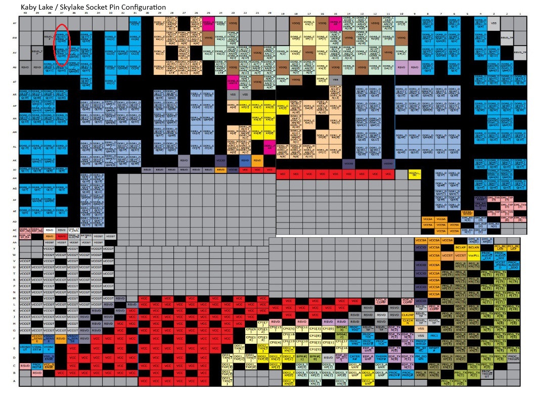 Porównałem pinout samego socketu dla Kabylake (dla tego procesora) i brakuje mi jedynie dwóch zaznaczony na zdjęciu sygnałów. Jakość jest za słaba aby odczytać co to za sygnały.