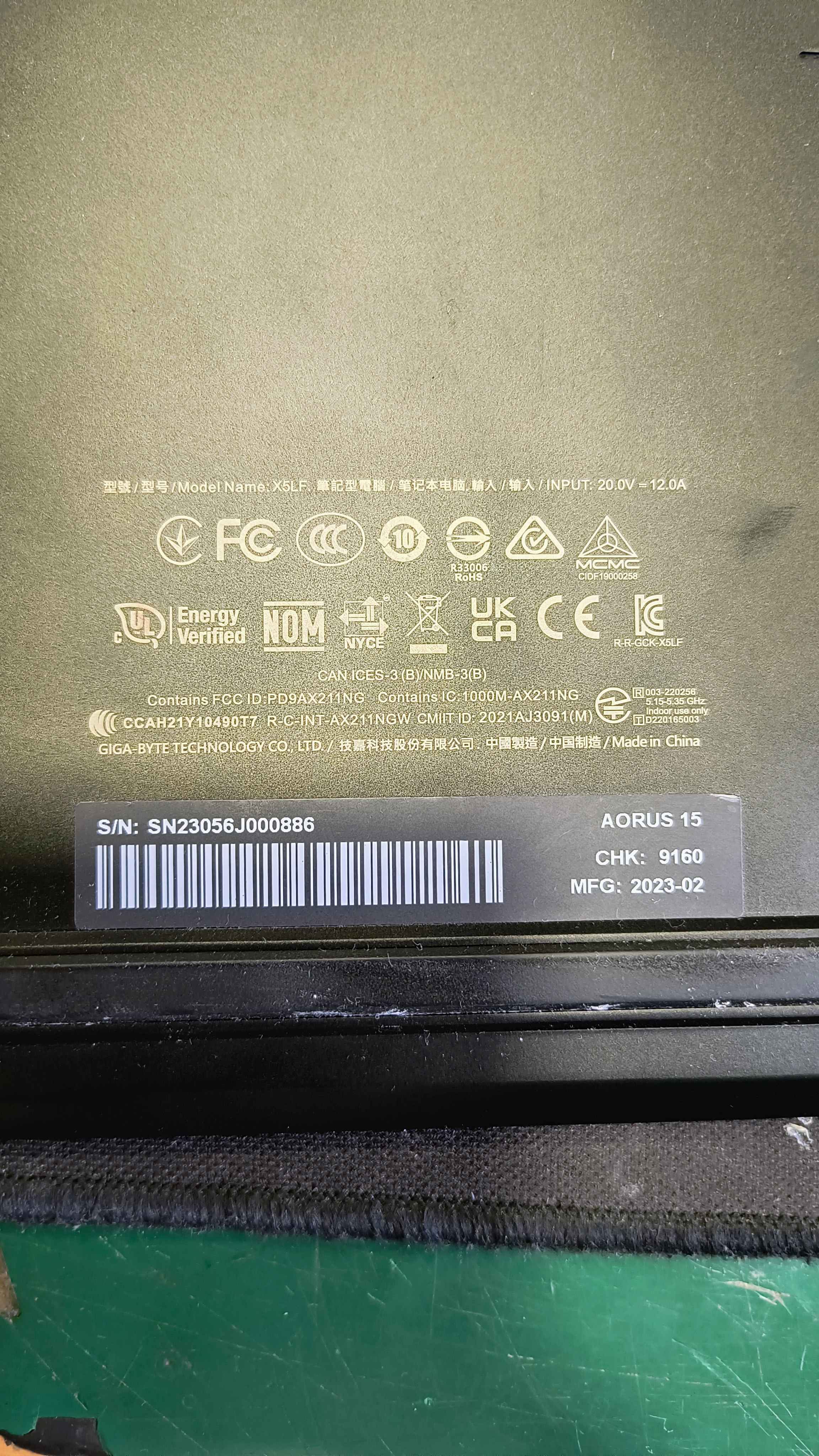Ale nie uzupełniłeś pełnej obsady układowej - brakuje oznaczenia EC/KBC oraz kości BIOS. Ponadto, na tabliczce znamionowej powinien być podany model w formacie: AORUS 15 BxF lub 9xF (gdzie x to jedna z liter: S, K, M). Ogólnie to nas interesuje tylko pierwszy znak - czy to jest B, czy 9.