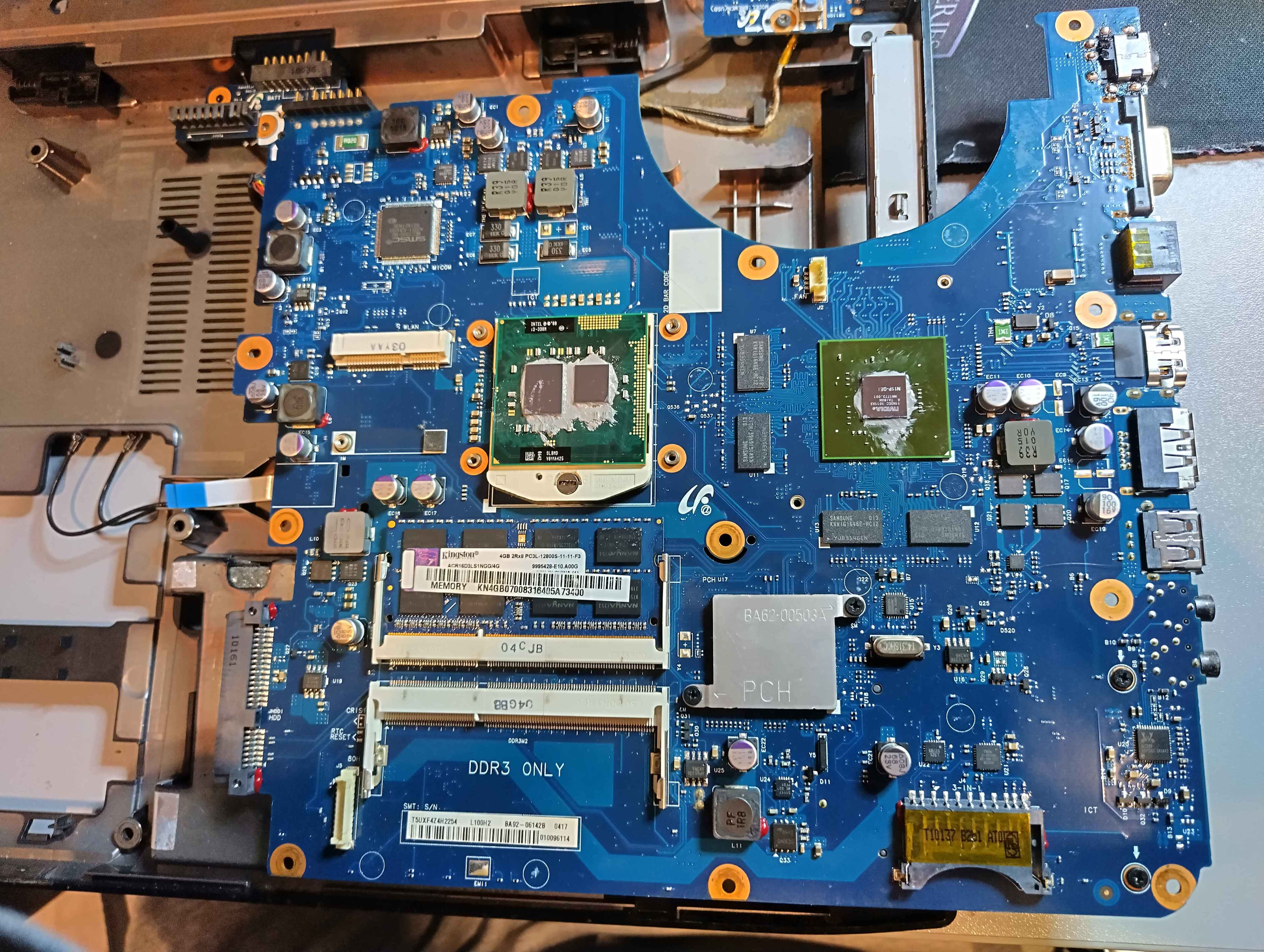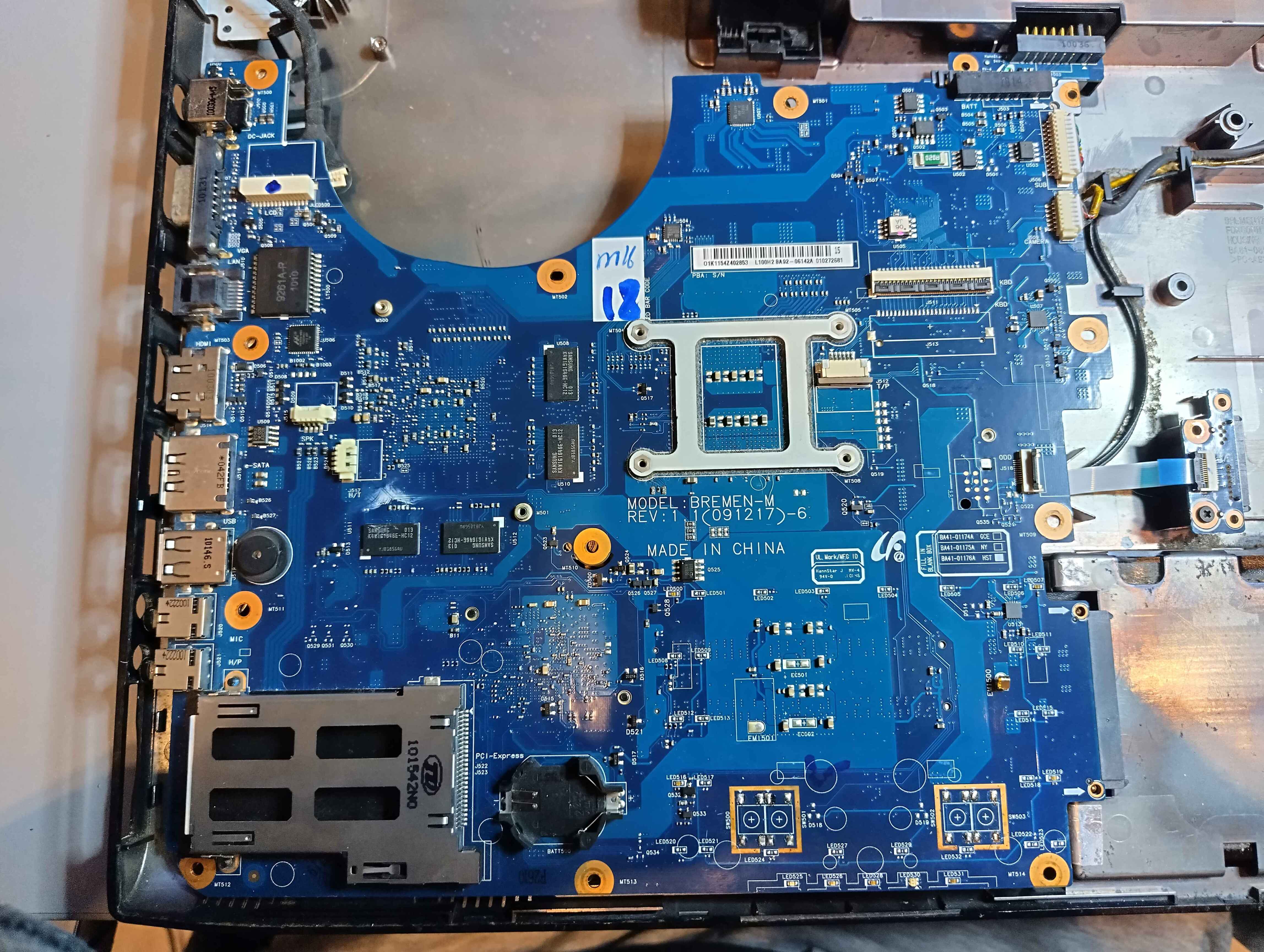 Po podłączeniu zasilania świeci się dioda. Po wciśnięciu włącznika na chwilę zaświeci się niebieska dioda, błysną cztery podświetlające touchpad. W tym czasie pobór prądu 0,7A, nastęnie rośnie do ponad 1A i się wyłącza. Włącznik trzeba nacisnąć kilkukrotnie by wystartował. Zdarza się rzadko że rozkręci wentylator i działa przez dłuższą chwilę nie dając żadnych oznak życia na matrycy. POST stoi na 0. Były zimne luty na złączu ładowarki które poprawiłem.