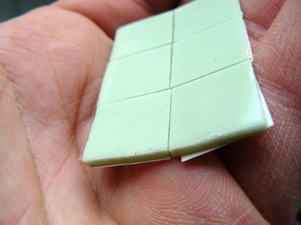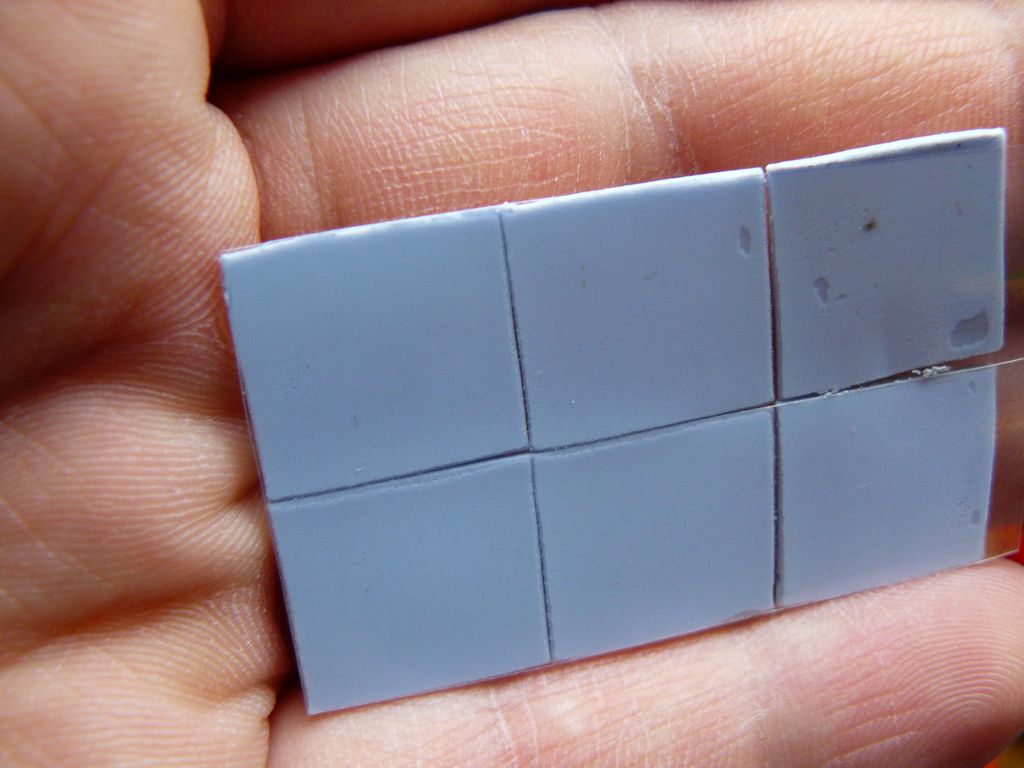 Dostałem info, że często są one stosowane na pierwszy montaż w fabrykach HP oraz innych, nie wien czy to prawda czy nie, ale faktycznie są przynajmniej z wyglądu i konsystencji identyczne. Zielone 2,8W (pomyłka, napisałem 4.5 a to są 2.8W) - bardzo elastyczne trochę "gluty" które często można spotkać przy chłodzeniu kości VRAM, niebieskie 5W także bardzo popularne, już mniej elastyczne.